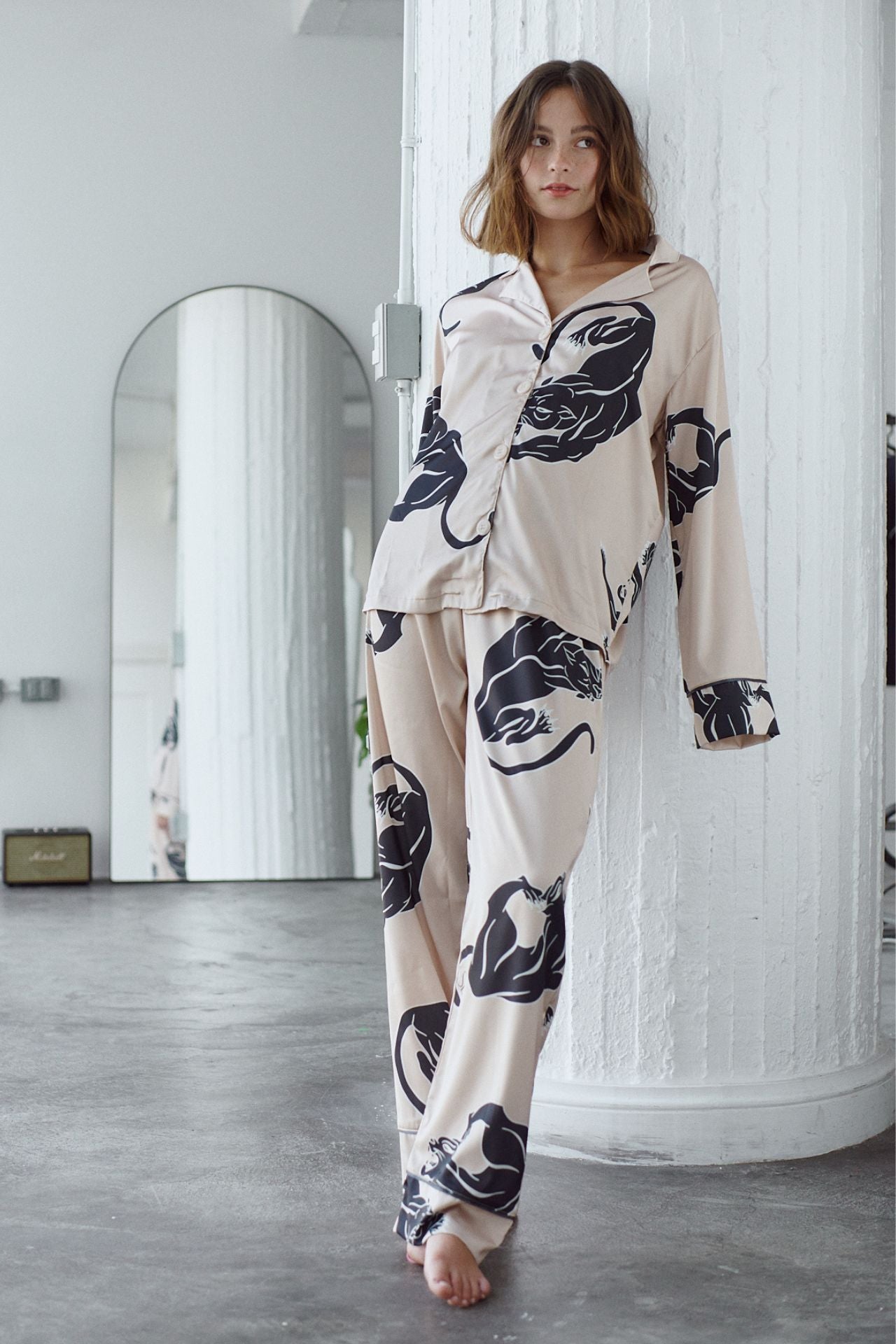 So in love with this set! I took a chance on this color and love it --- sooo pretty and flattering in person. I feel cozy and fancy at the same time lol. I ordered a Medium and it fits great, perfectly oversized and comfy. And the pants have an elastic waistband which is ideal for me. 10/10